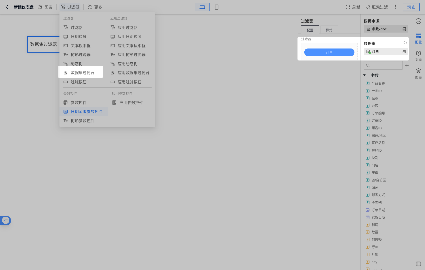 仪表盘中添加数据集过滤器的操作步骤