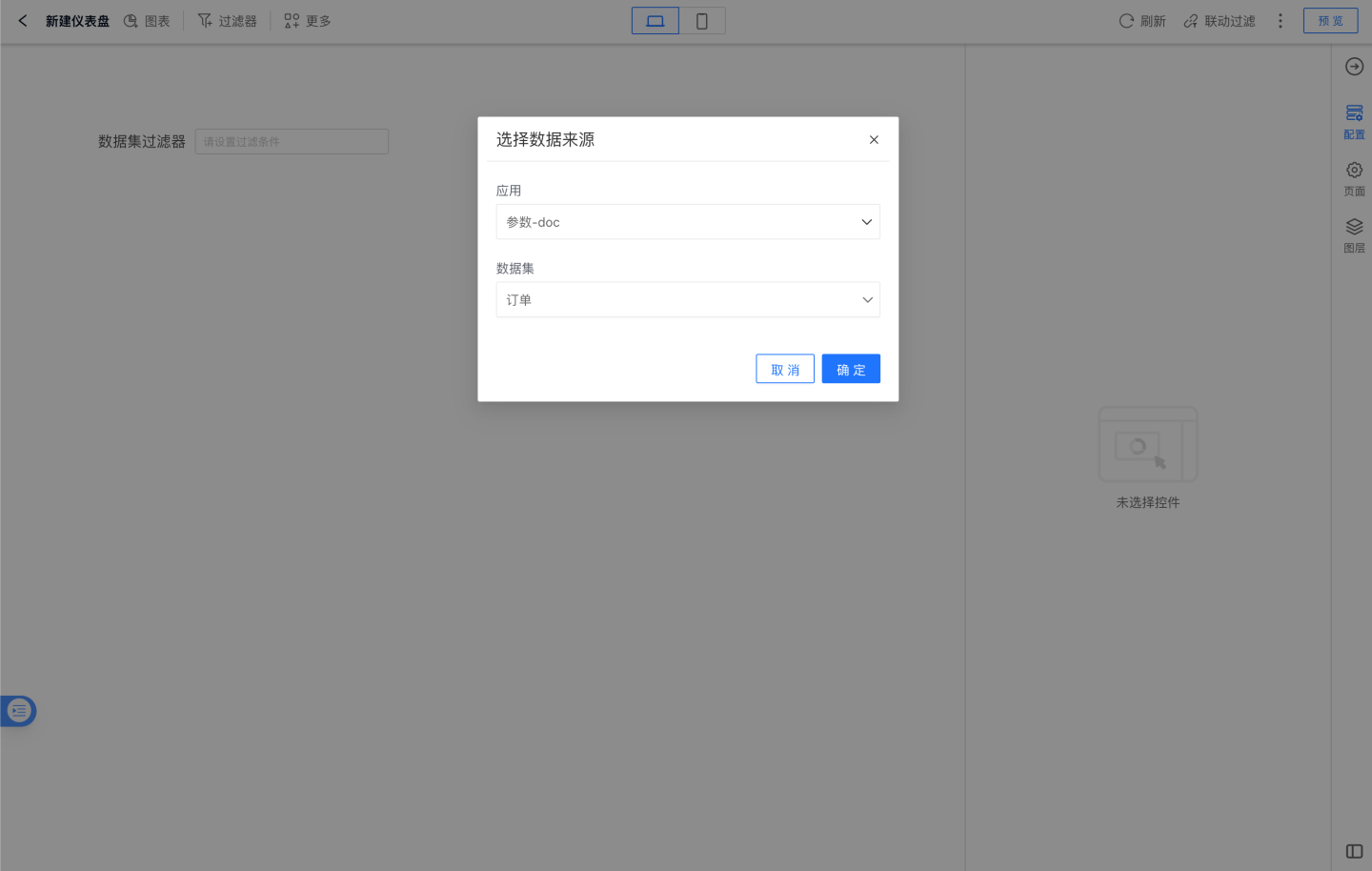 在唤起的数据集选择对话框中配置希望用于此过滤器的数据集。