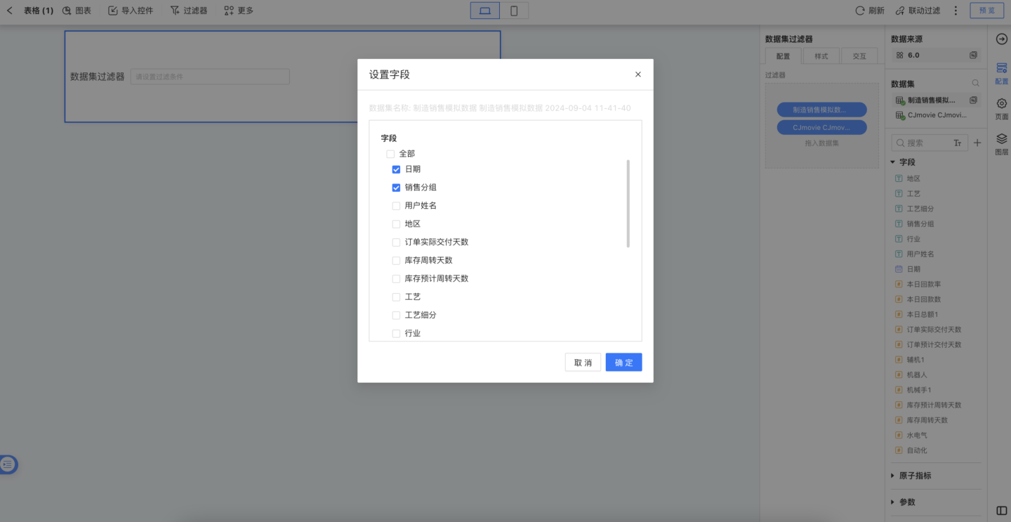 支持对数据集进行字段设置