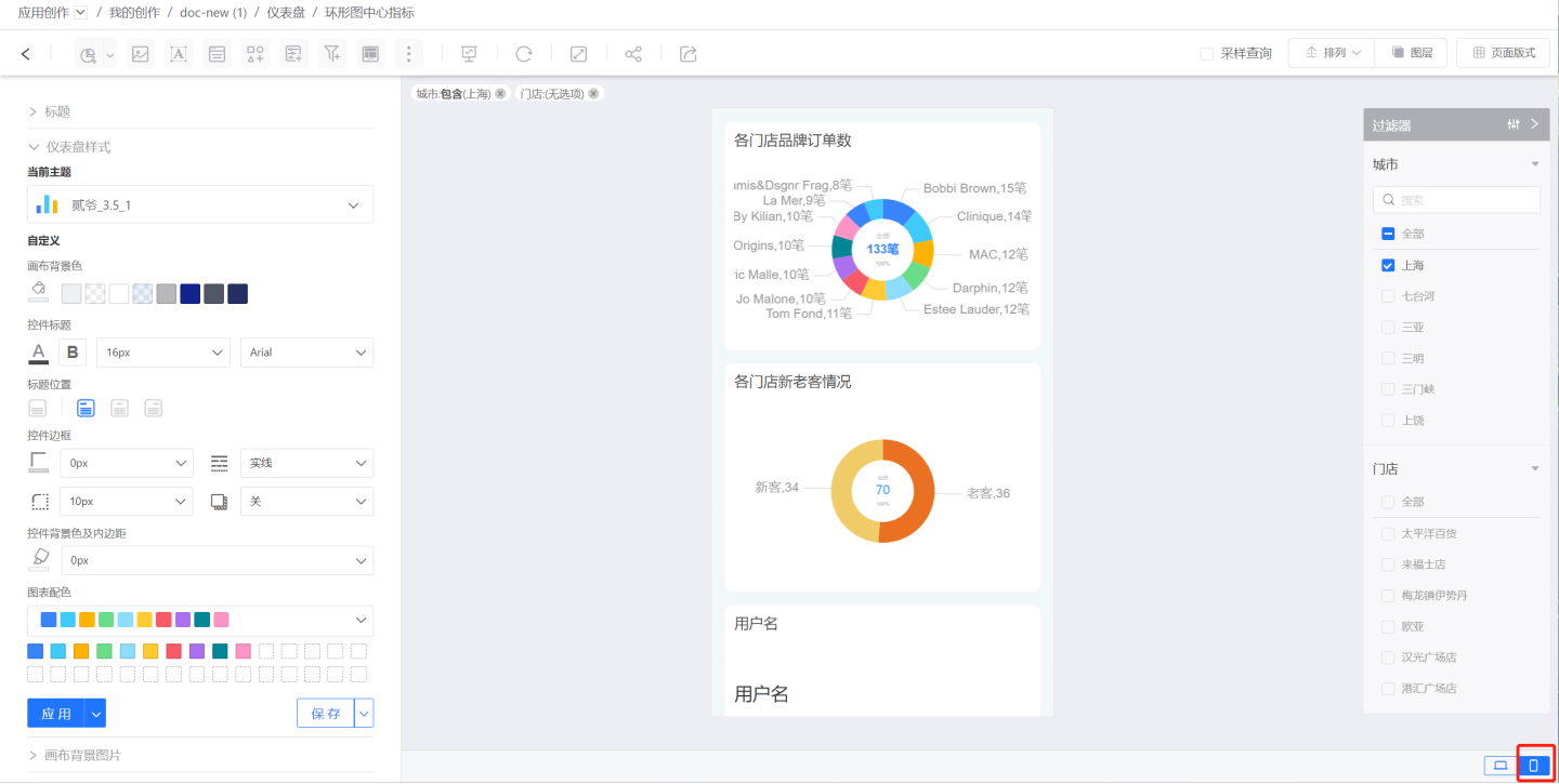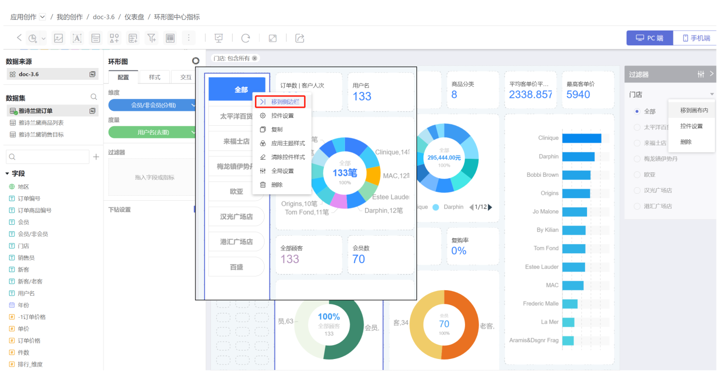 当画布内控件有限时,可以将过滤器从画布内移动到侧边栏,使用时展开进行数据过滤筛选,不用的时候收起在侧边栏。