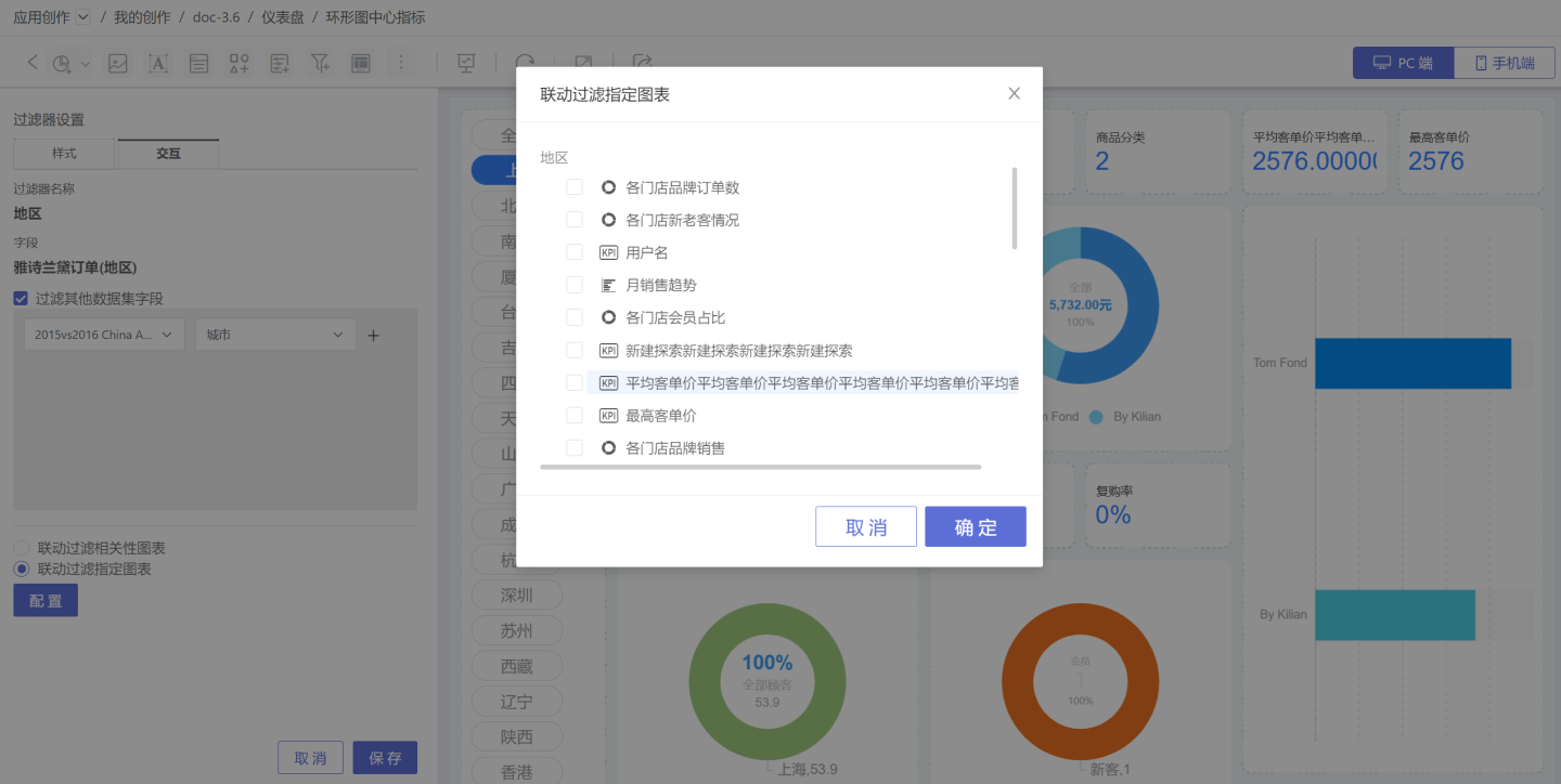 联动过滤指定图表,是在相关性图表中挑选一部分图表进行联动。没有选中的相关性图表不会进行联动。