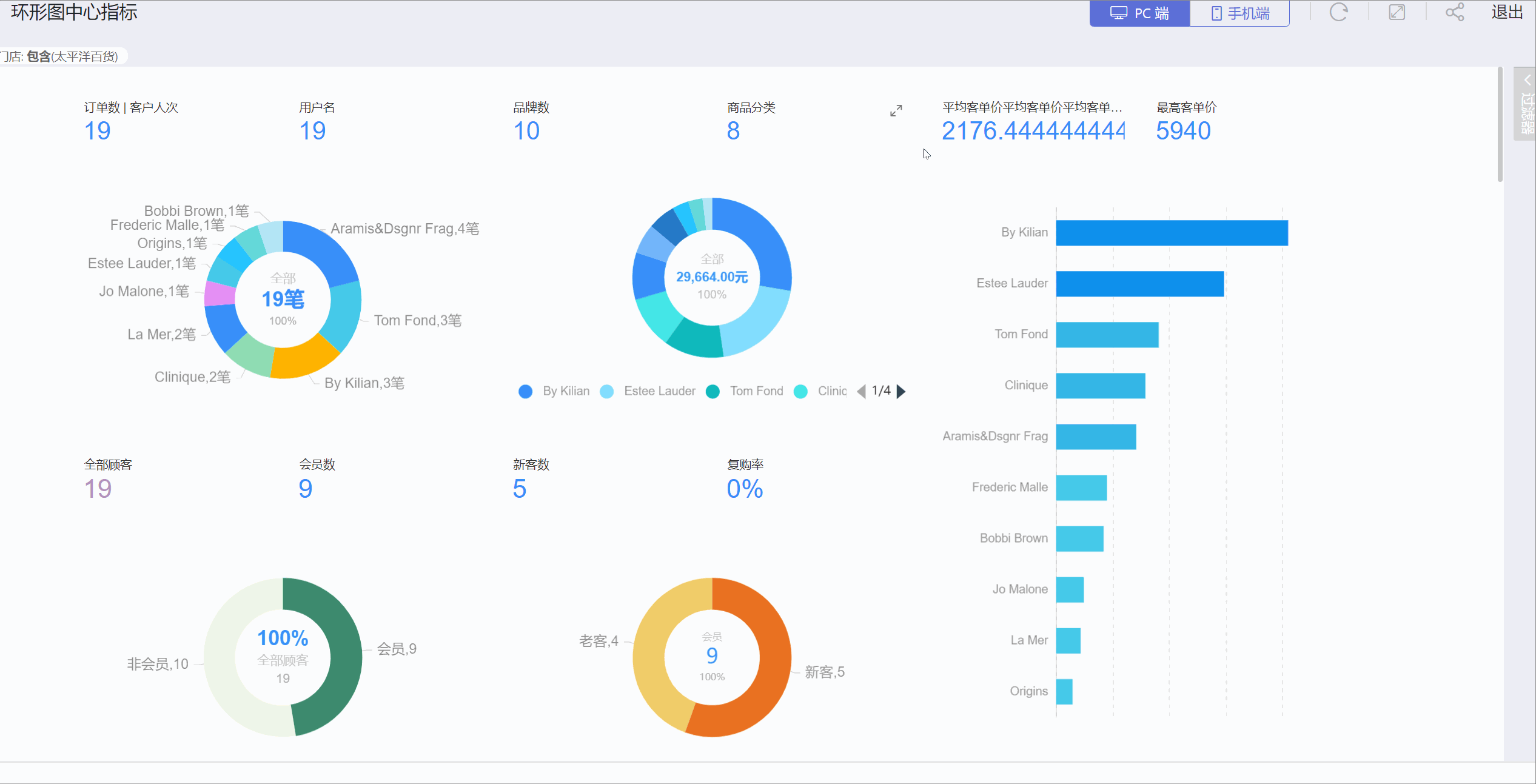 发布后,侧边栏会展示在仪表盘的右上方,点击侧标栏 icon 展示侧边栏中所有控件(包括过滤器控件和参数控件),通过勾选过滤选项进行仪表板数据筛选,再次点击时回到仪表盘页面。