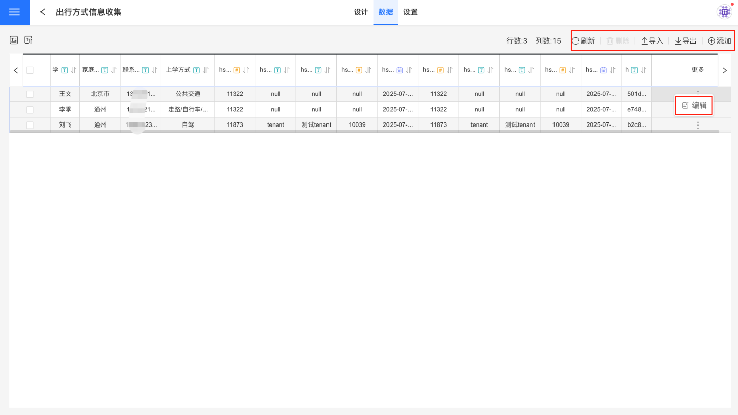 表单管理者可以对表单数据进行添加、编辑、导入、导出、删除等操作。