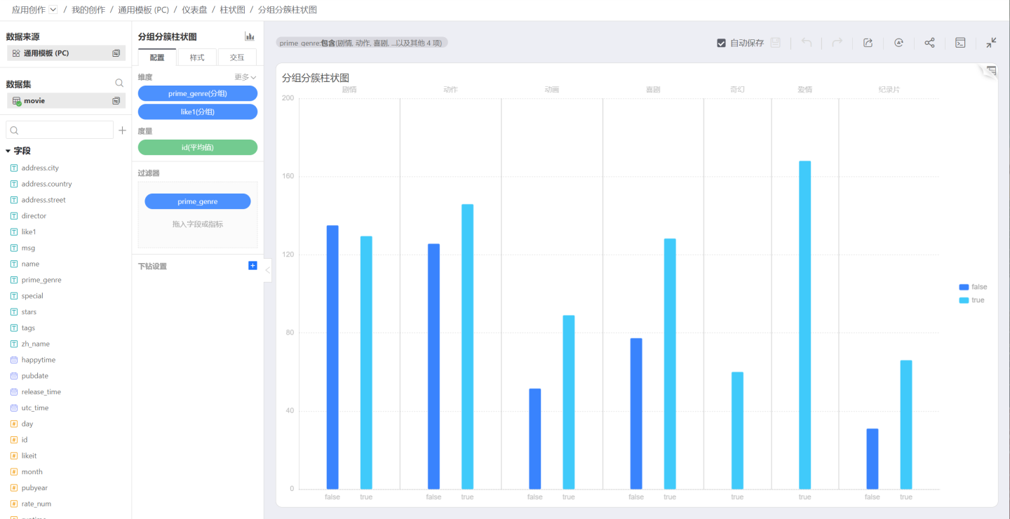 分组分簇柱状图相对于柱状图,多了一层分组,可以将二级分组的图形聚类在一起展示对比。如下图所示: