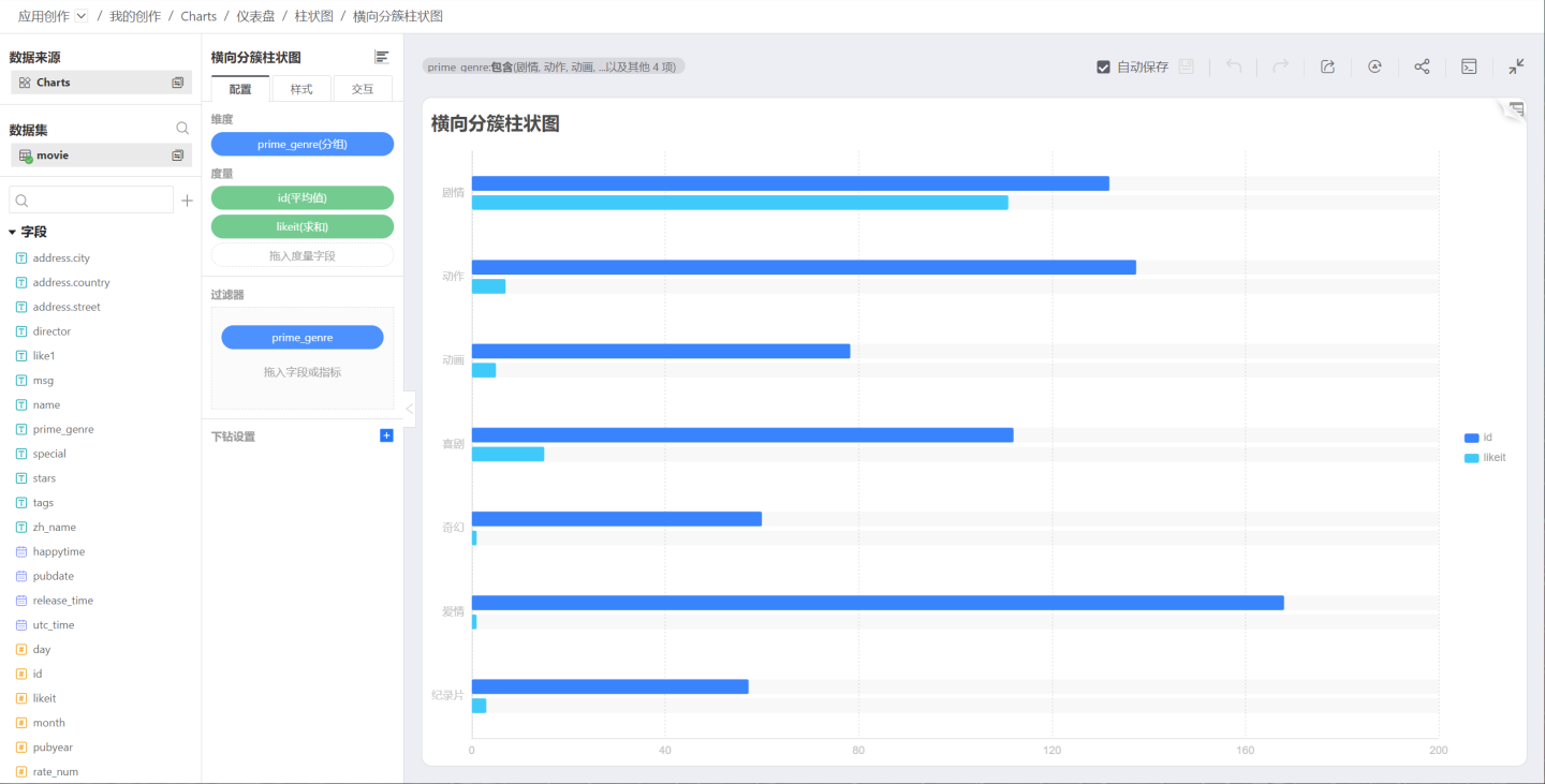 可以选择多个度量,横向堆叠显示每个分类下的所有度量。