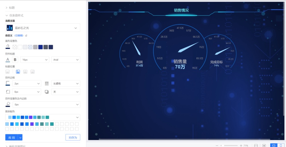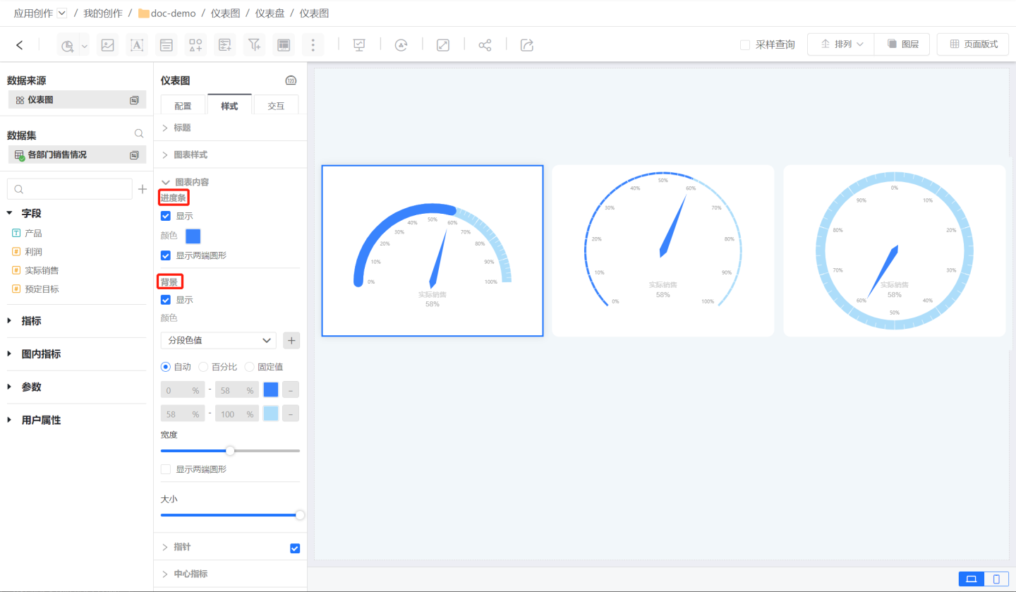图表内容包括进度条、背景和仪表图大小。
