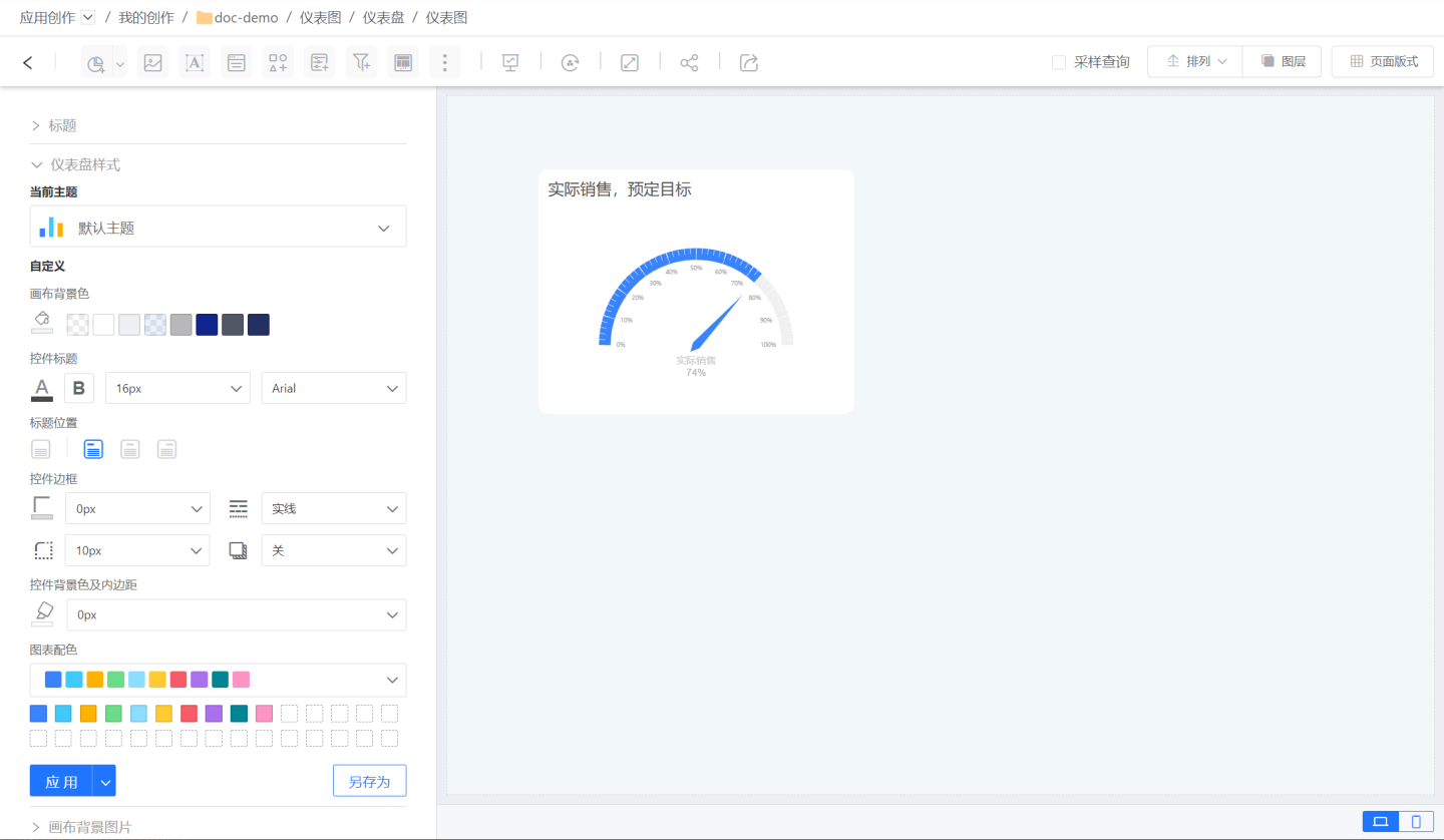 仪表图可以在控件设置中进行外观设置,详细设置内容参见控件外观。