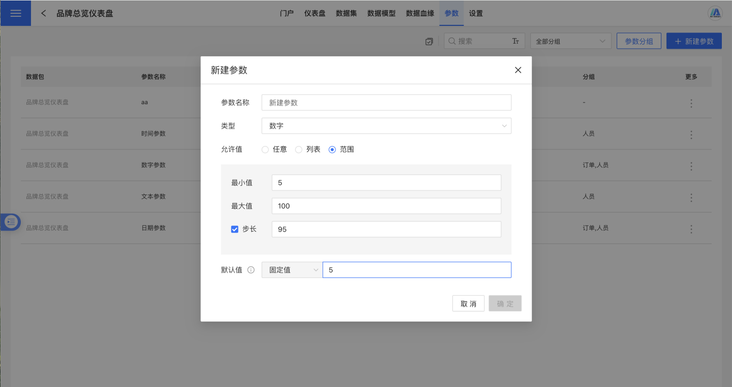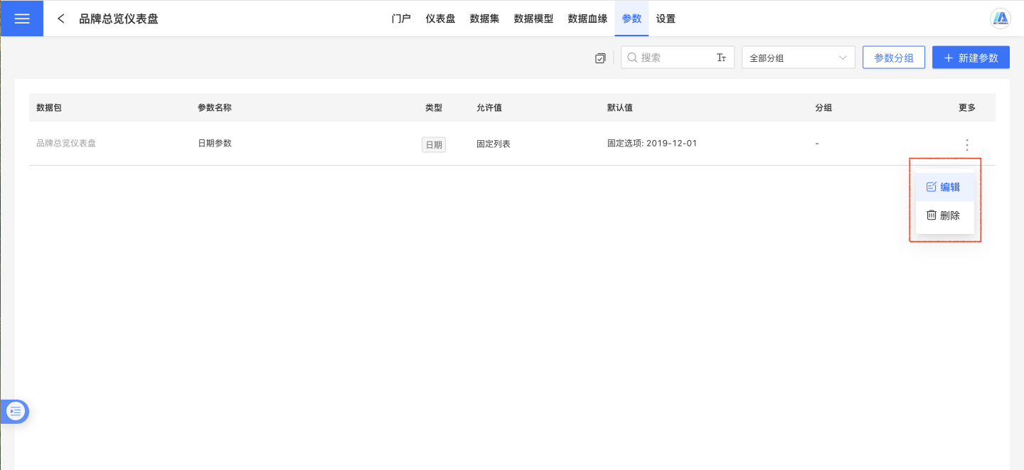 点击参数列表中的三点菜单,在弹出菜单中选择编辑参数,就可以弹出编辑参数弹窗,对参数进行修改。