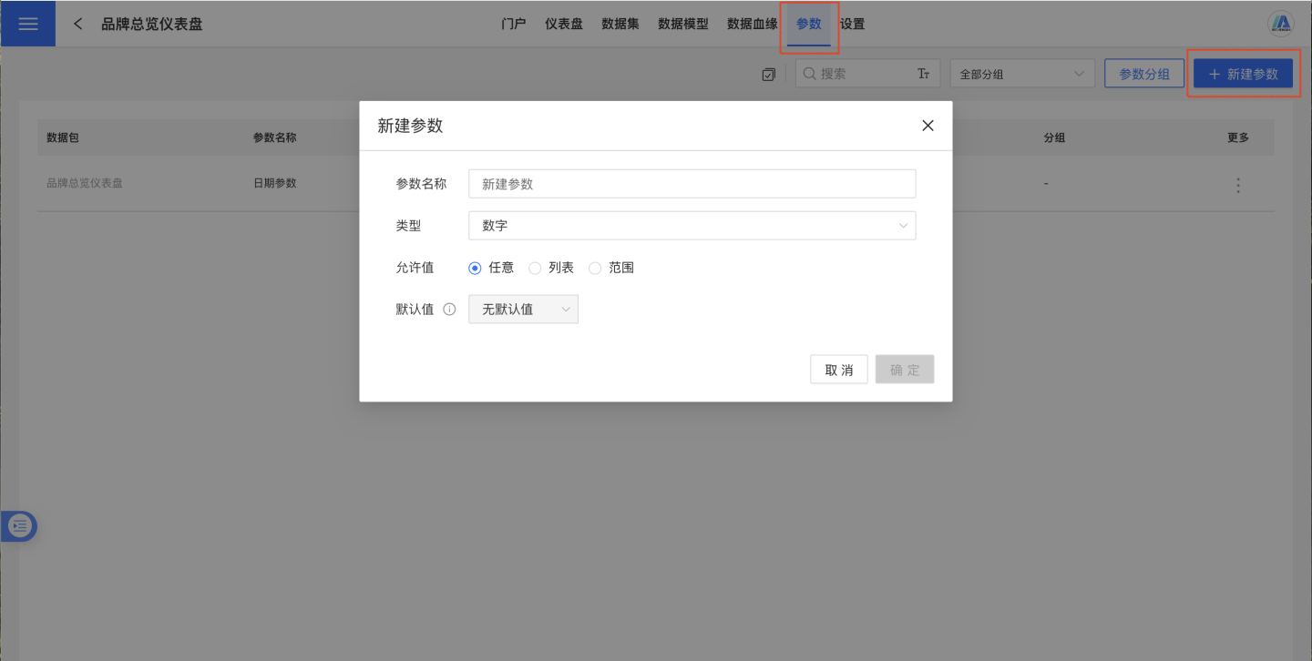 当参数的允许值为“列表”或“范围”时,随着时间的迁移,参数值可能会不在列表之内或者超出了指定范围,使用该参数的数据集或图表会报错。