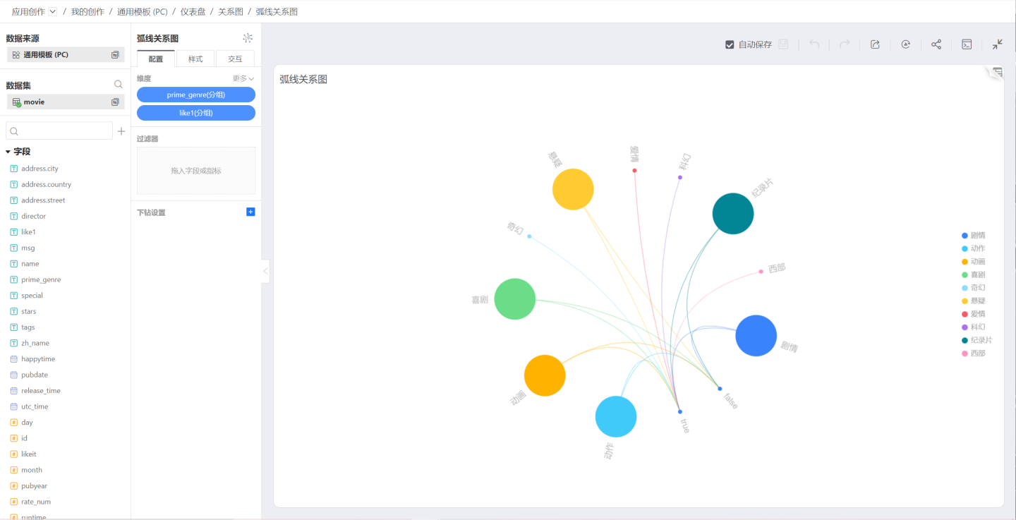 弧线关系图适用于表达数据之间的关系,以及关系的重要性。