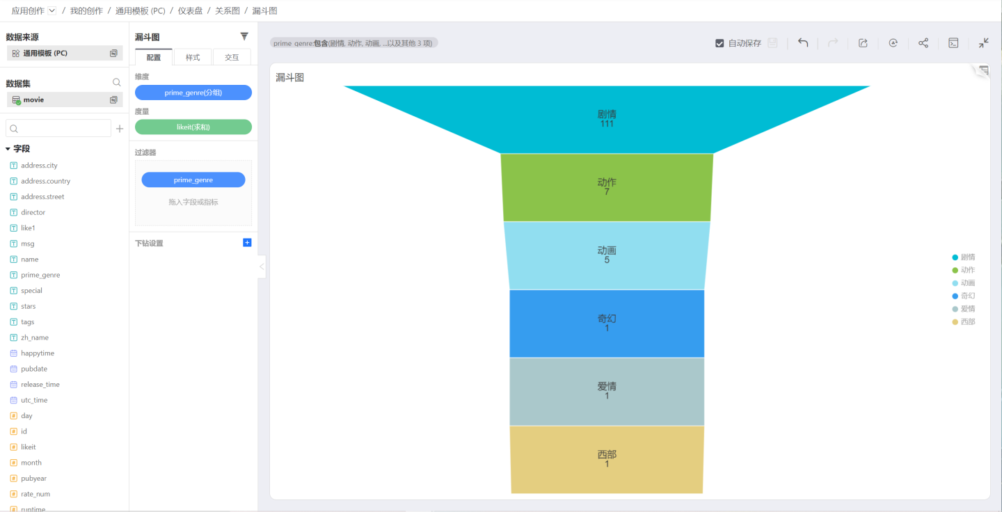漏斗图适用于业务流程比较规范、周期长、环节多的单流程单向分析,通过漏斗各环节业务数据的比较能够直观地发现和说明问题所在的环节,进而做出决策。漏斗图用梯形面积表示某个环节业务量与上一个环节之间的差异。漏斗图从上到下,有逻辑上的顺序关系,表现了随着业务流程的推进业务目标完成的情况。