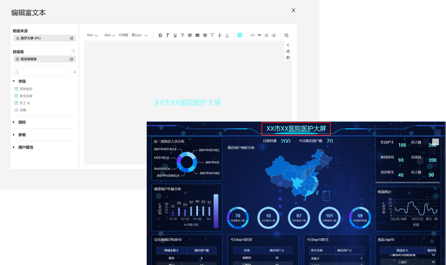 - 在富文本中展示数据集字段、指标、参数等信息。