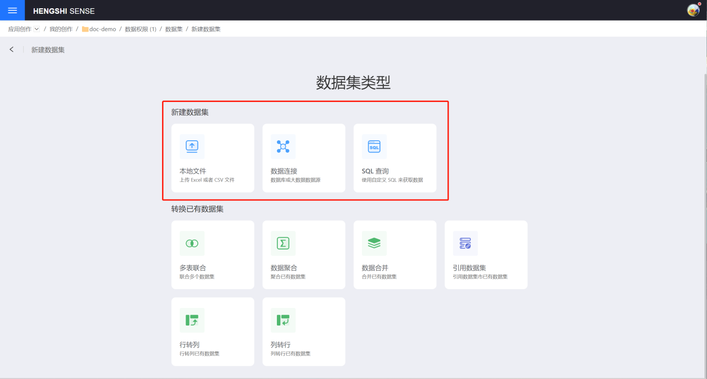 - 应用中所有数据集都是应用中新建的数据集,不涉及数据集市中的数据集。