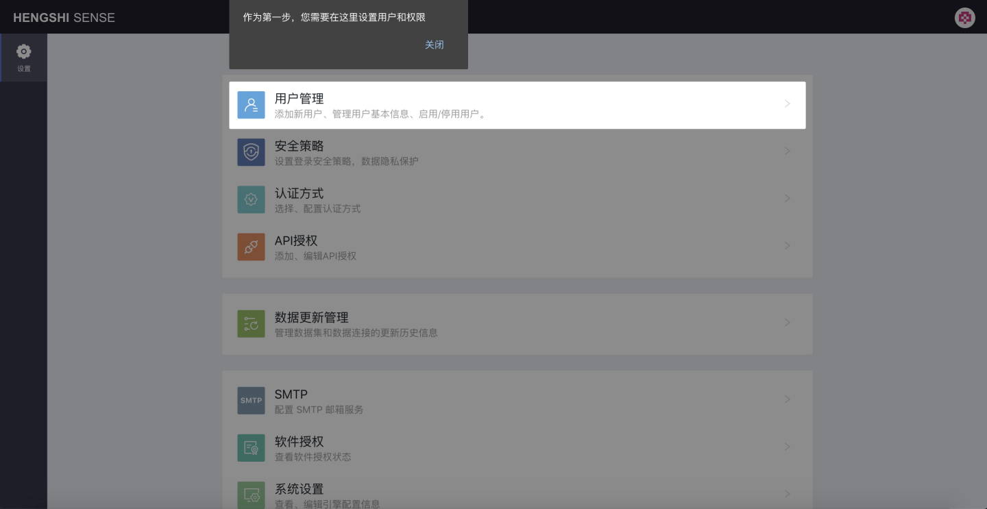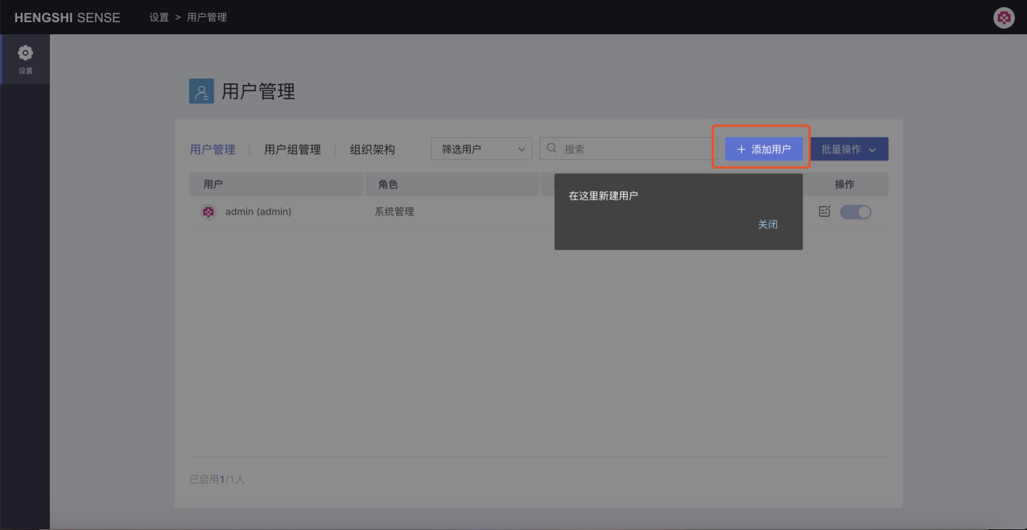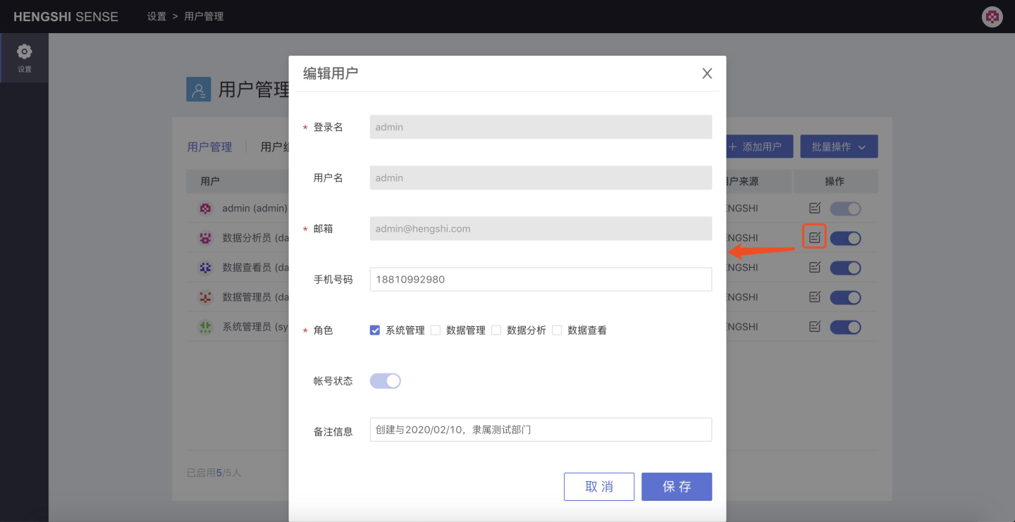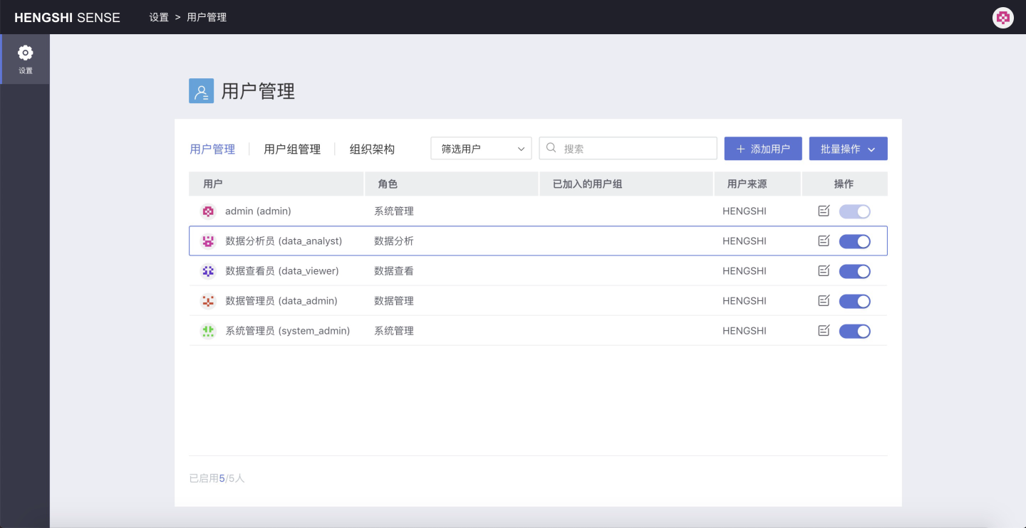 - 用户角色:默认值为 数据分析,需自行修改为合适的角色