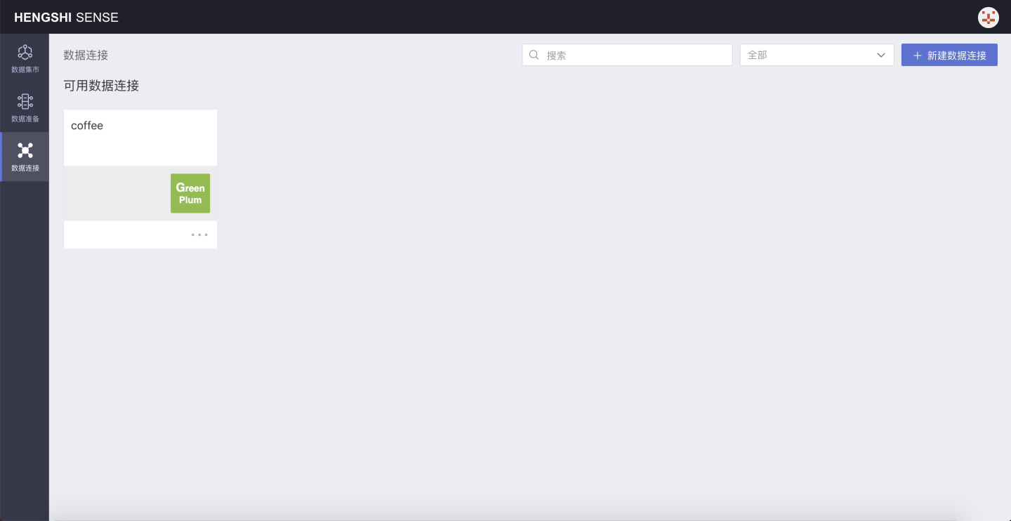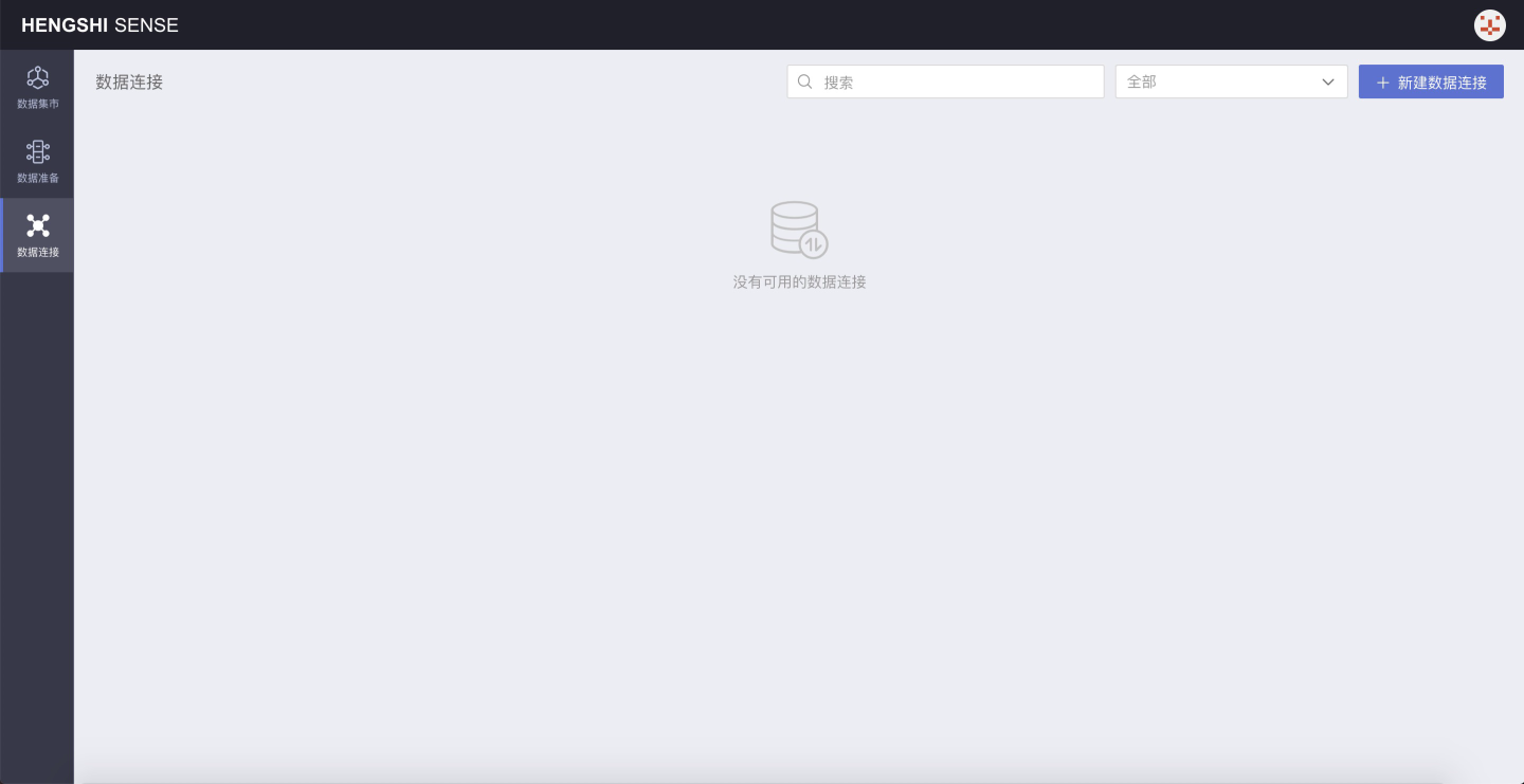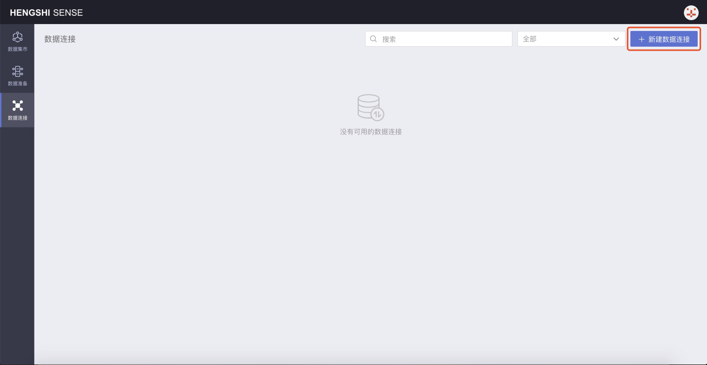 在进行数据处理的一系列操作之前,首先需要新建数据连接。数据连接由拥有 数据管理 角色的用户配置其他角色的账户无法创建连接。
