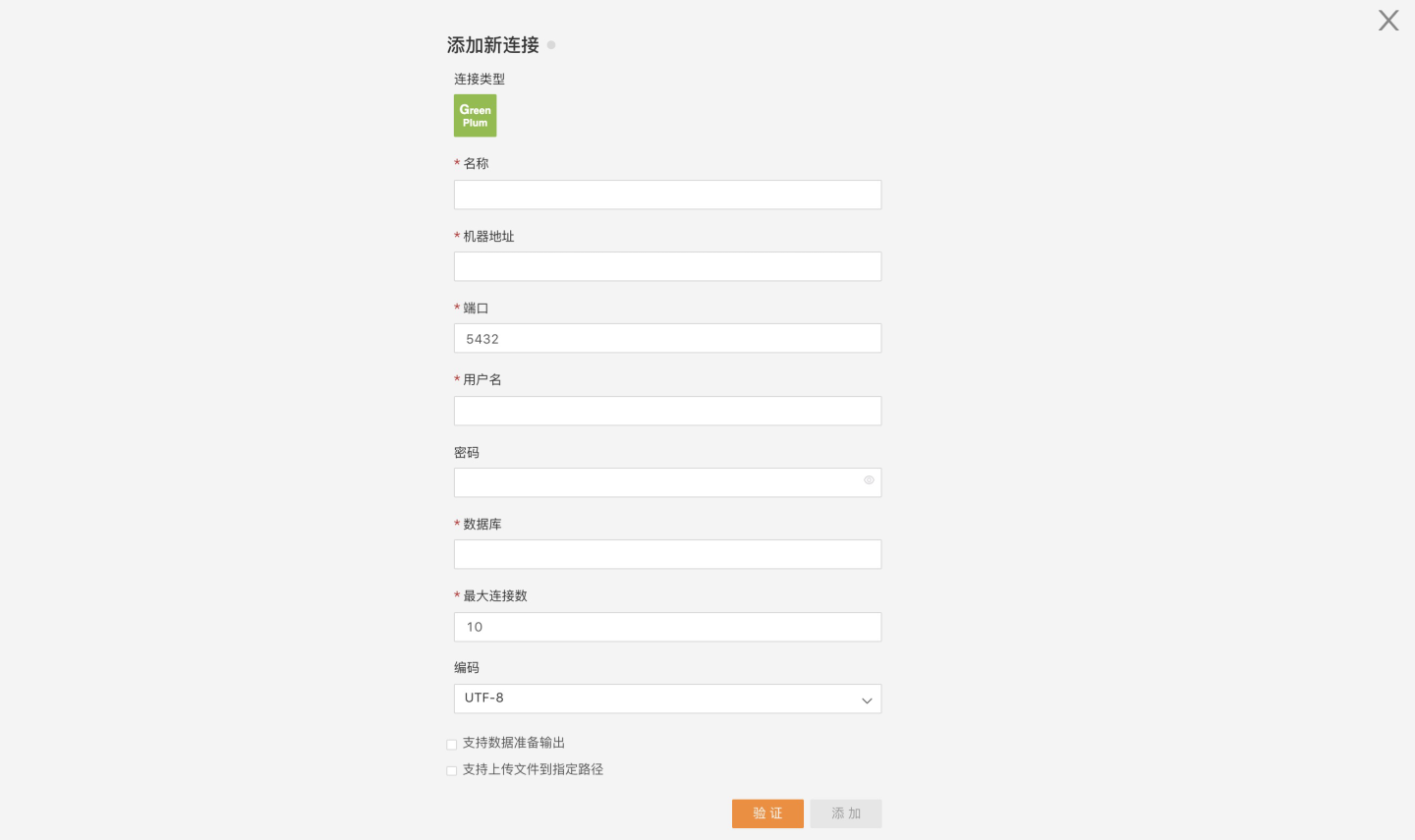 - 目前仅支持 Greenplum,PostgreSQL,Amazon Redshift 三种数据源作为输出路径;