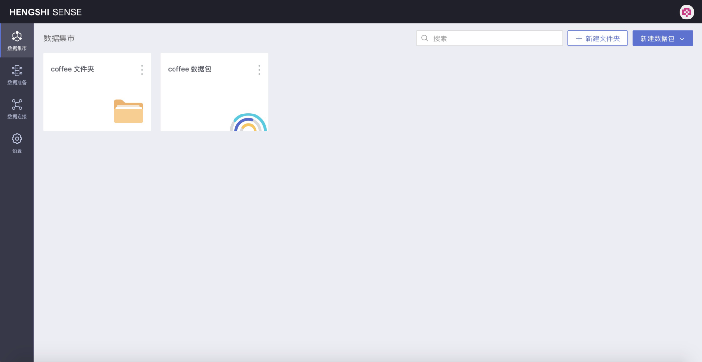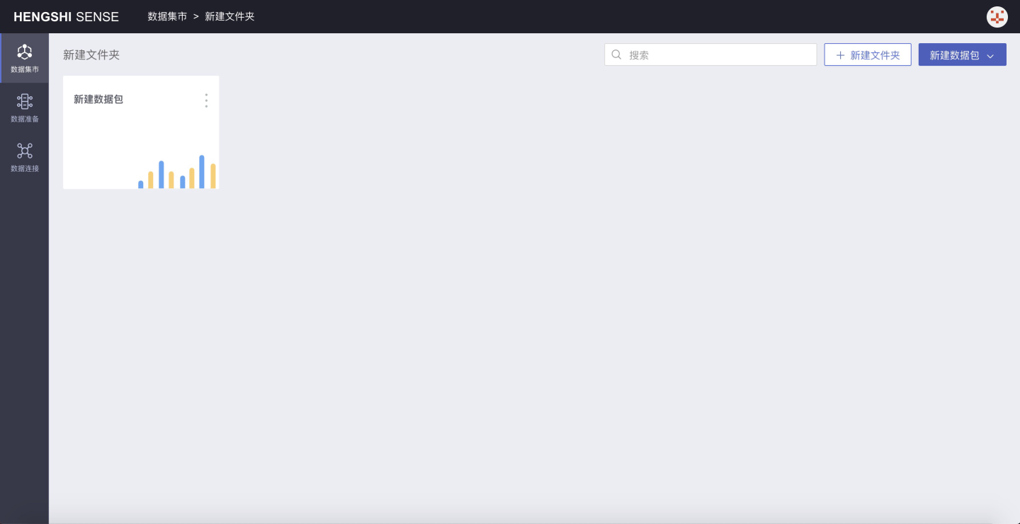 如上图所示,可以直接在数据集市的首页创建文件夹和数据包。