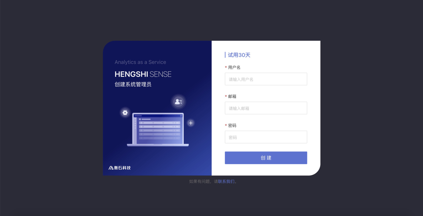 输入用户名、邮箱以及密码,点击创建,系统管理员账户创建成功。
