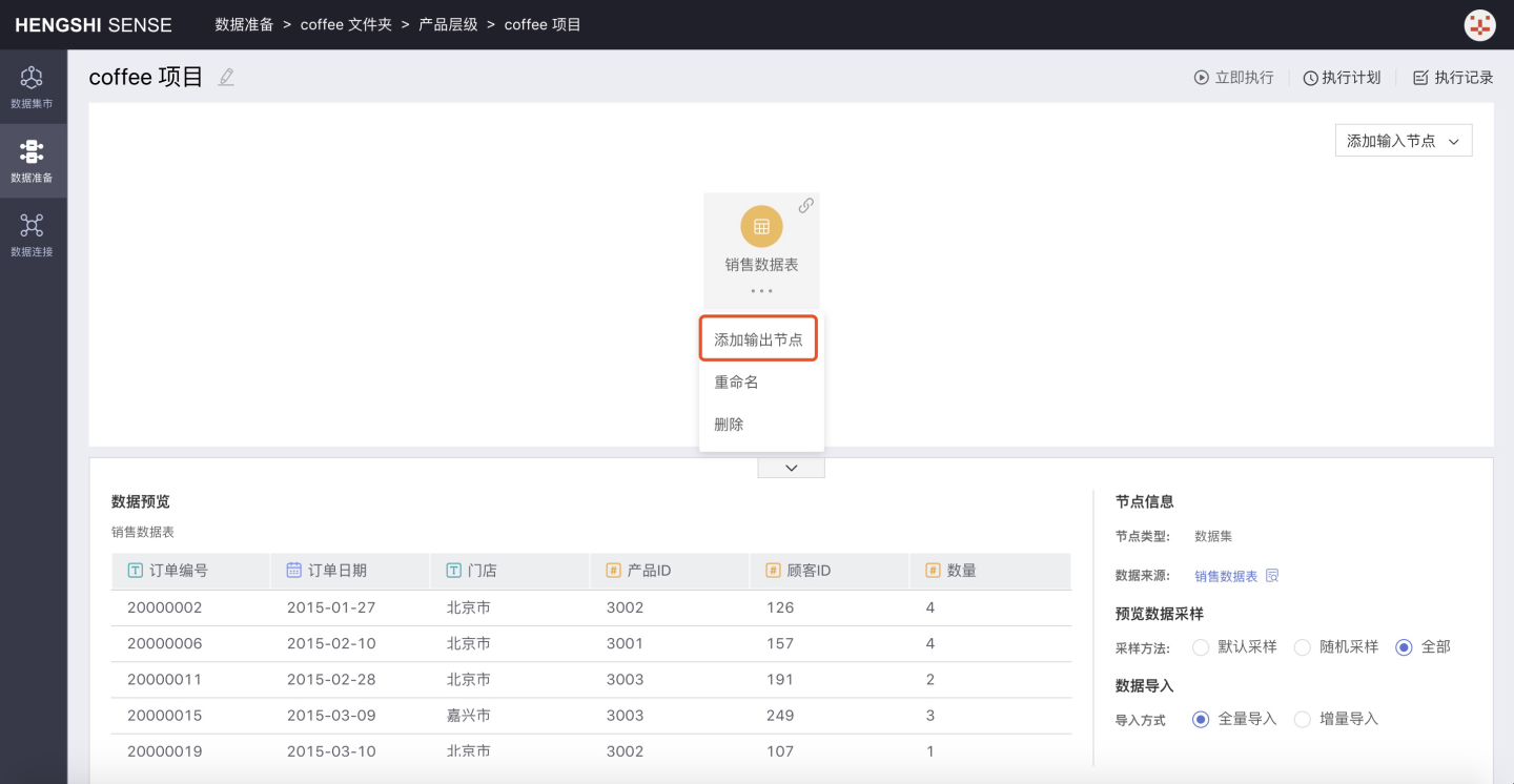 版本信息:本节内容在3.0版本中增强了输入节点的内容,添加了将数据集市中的数据集作为输入节点,其他配置未修改。