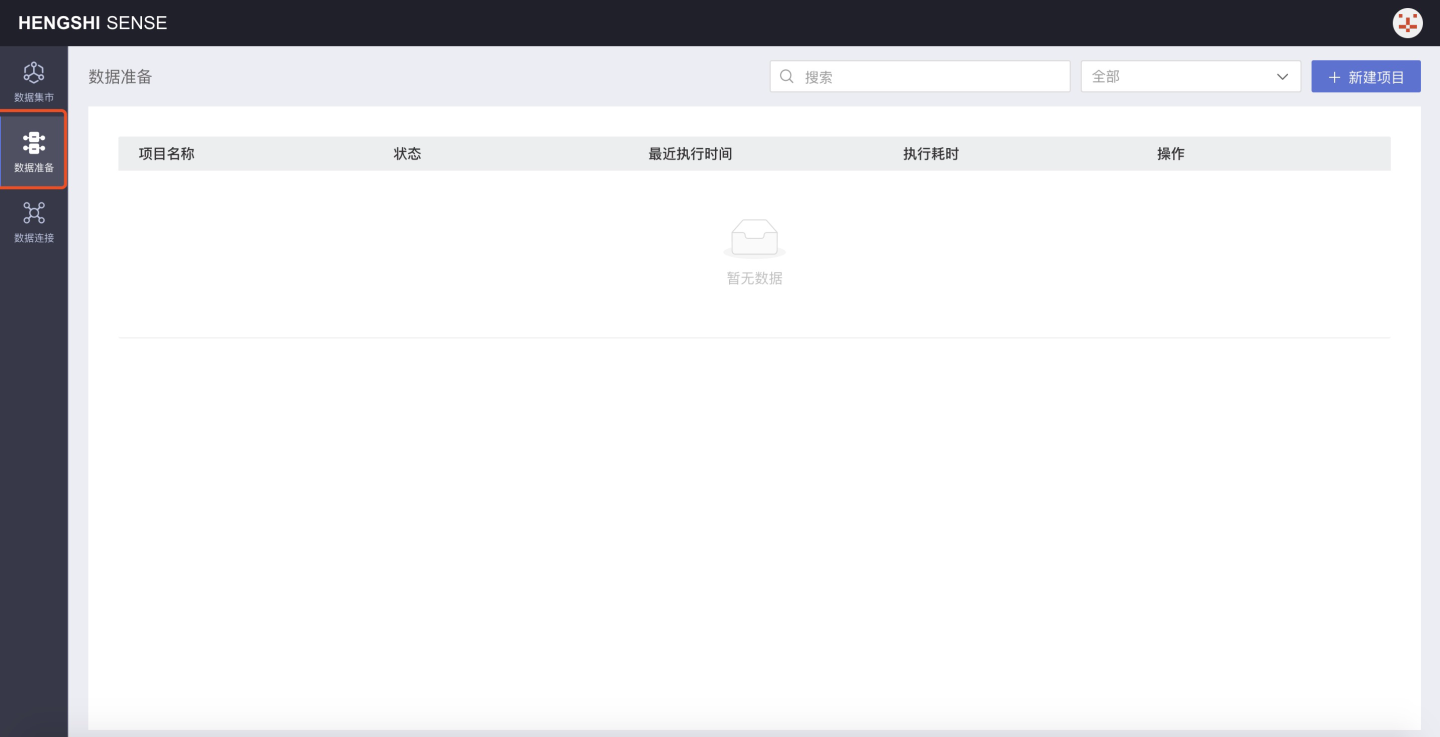 从右上角的新建项目,可新建数据集成项目,如下图所示: