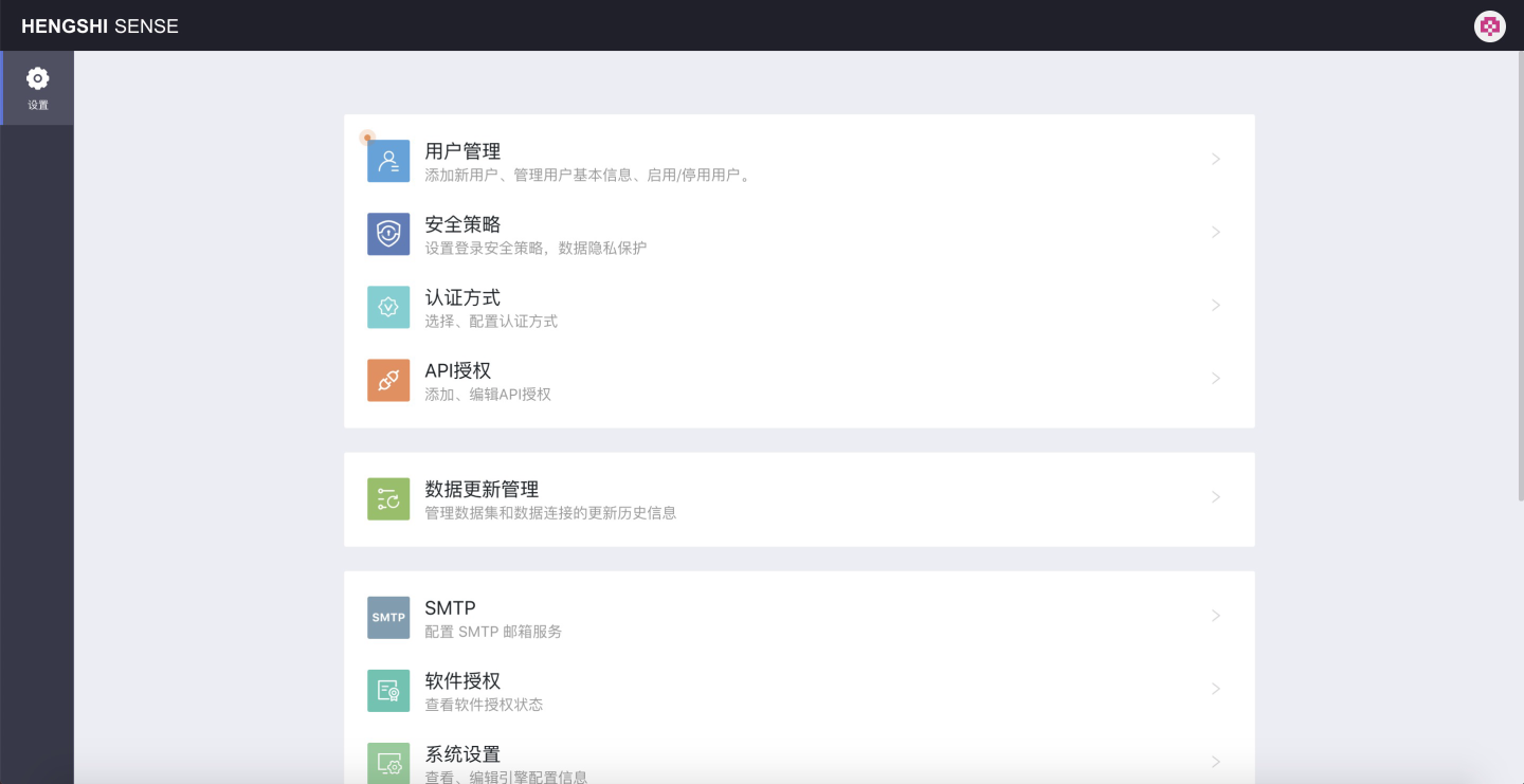 | 系统管理+数据管理+数据分析+数据查看 | 可见 | 可创建 | 可建任意数据集 |