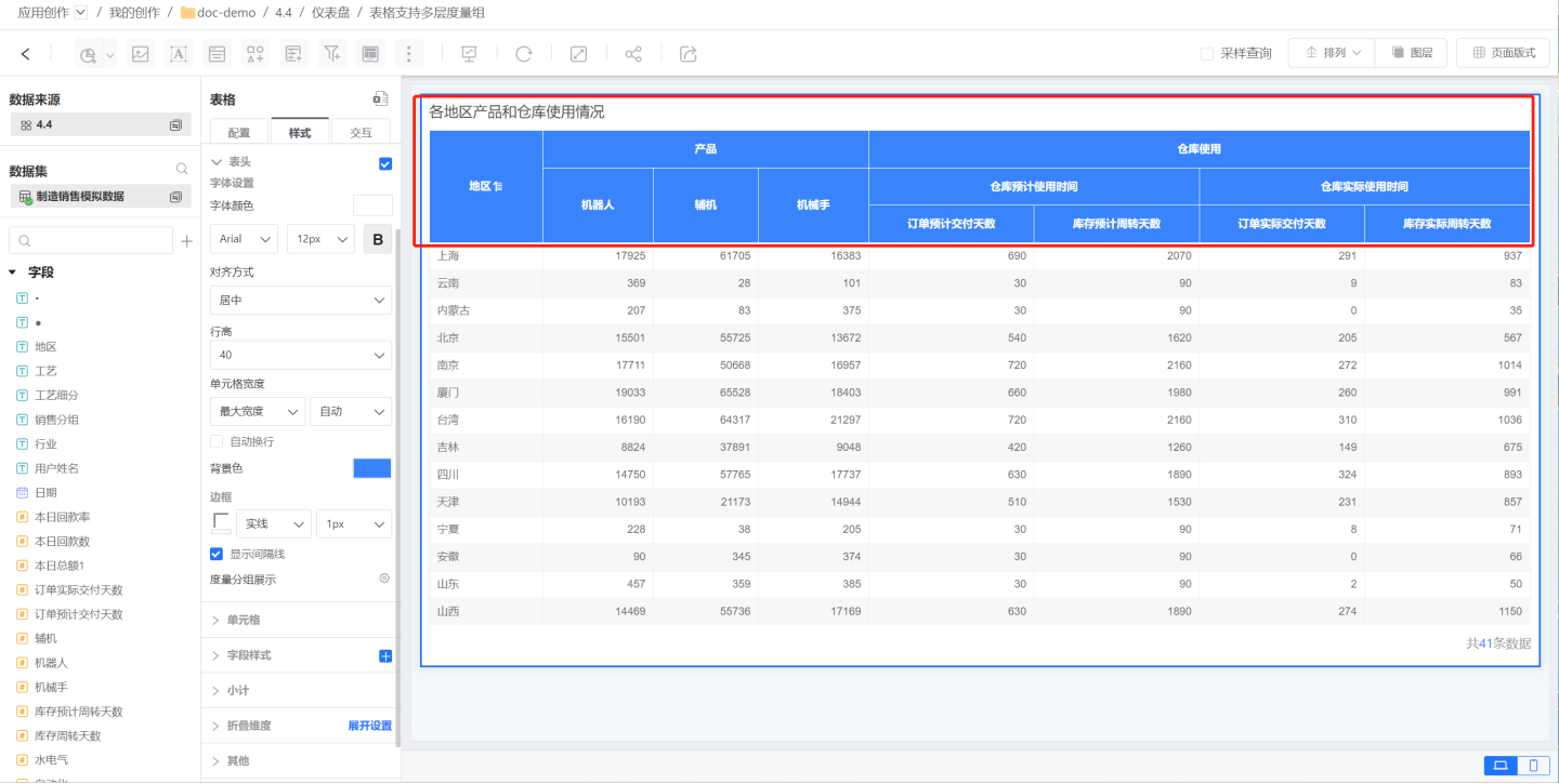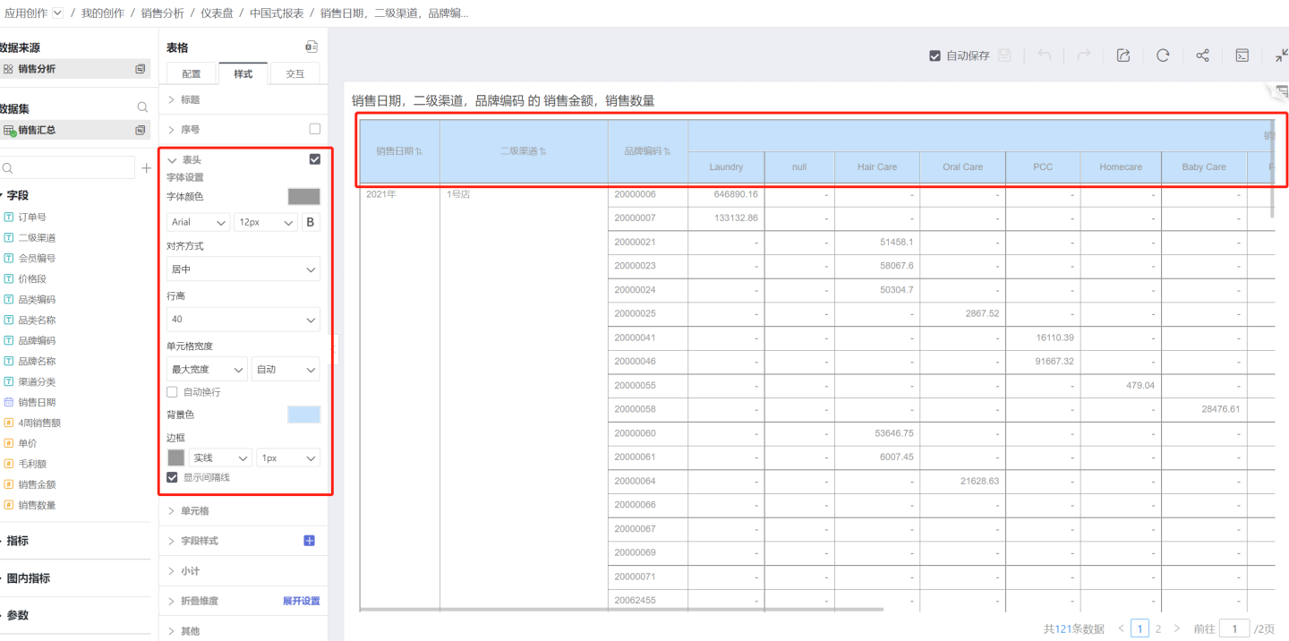 在表格类控件中,可以对表格的表头、单元格、字段样式等进行设置,使表格展现更美观,用户获取数据更直观、方便。