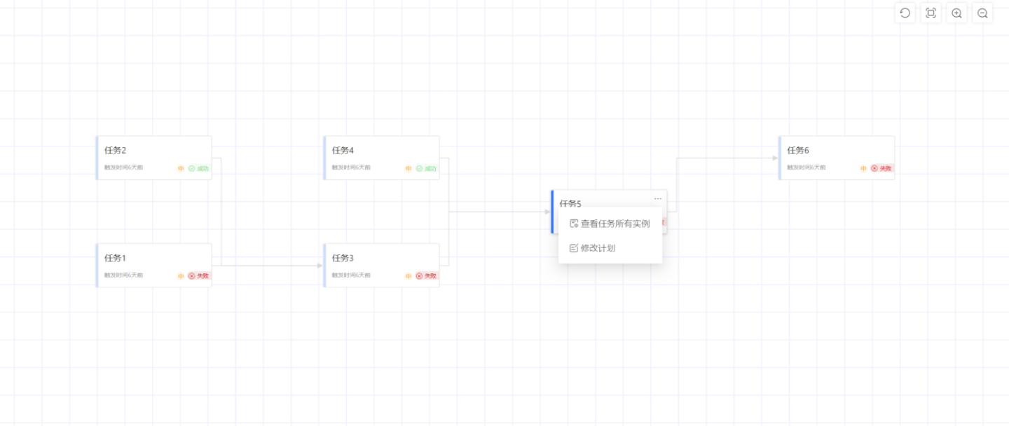 在执行计划的 DAG 图表可以查看任务所有实例和修改任务计划。 查看任务所有实例就是查看任务的执行记录。