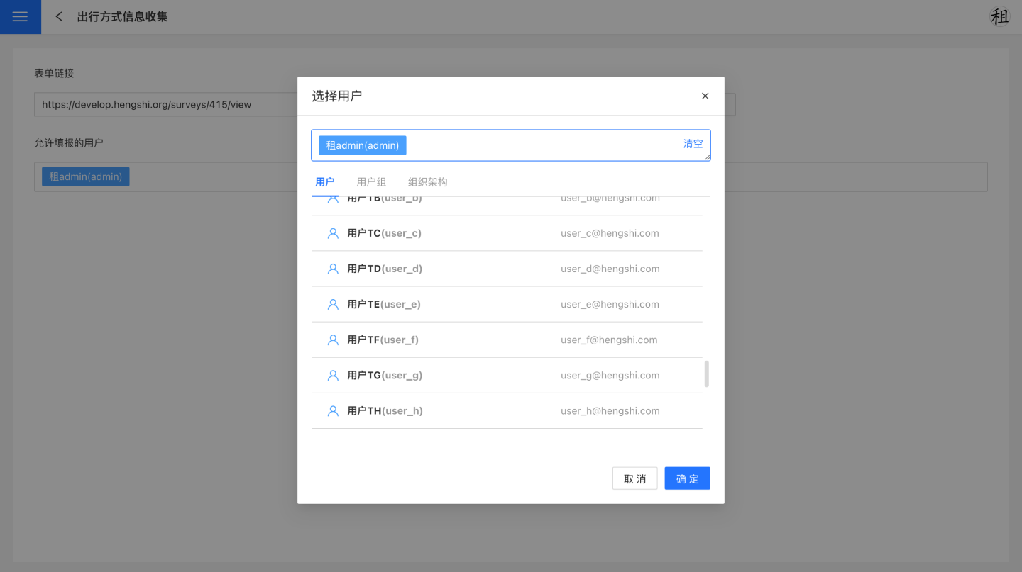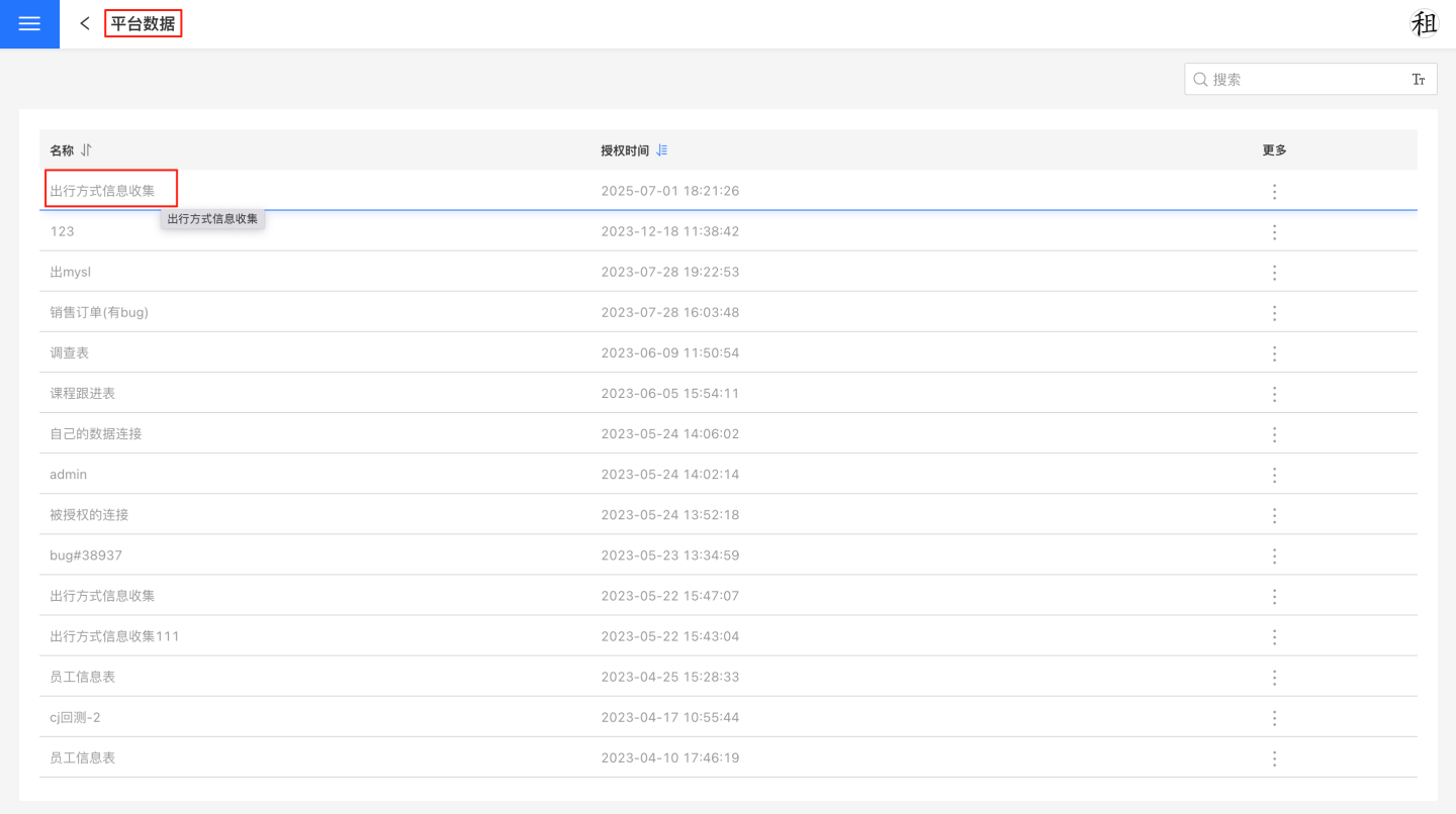 租户方管理员在平台数据中可以看到平台分享的表单。 打开表单后,可以对表单进行二次授权管理,让租户系统内的其他用户进行填写。