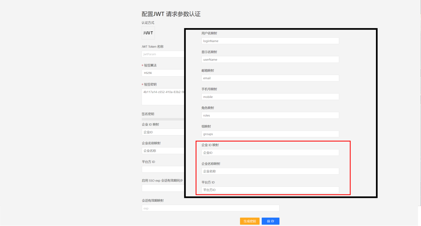 如图,租户使用 JWT 认证登录到租户系统中,在登录信息中填写企业 ID 映射、企业名称映射、平台方 ID 等信息,登录成功后,平台方租户管理中会自动增加一条租户信息,这个时候只有该企业租户信息,没有租户管理员,可以通过升级为管理员指定租户系统管理员。